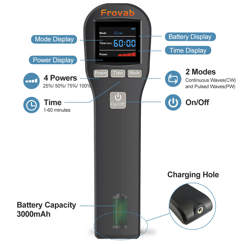 Overview: The Premium Cold Laser Therapy Device is an advanced solution for pain management and healing. Featuring a combination of 808nm and 650nm wavelengths, this handheld device offers powerful, drug-free pain relief for both humans and pets.
