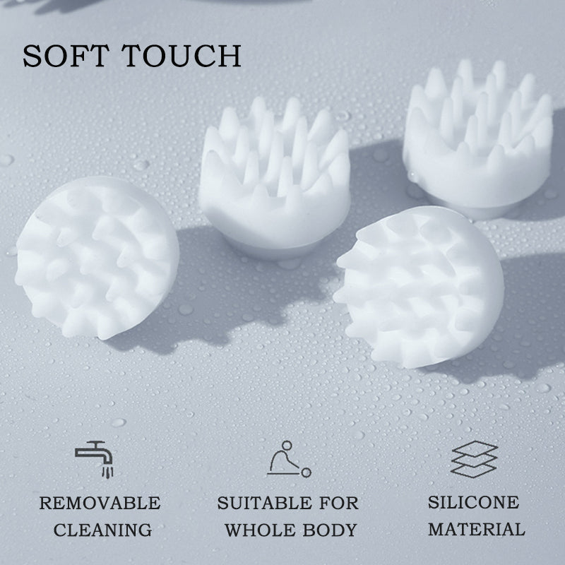 Waterproof & Skin-Friendly: Made from IPX-7 waterproof material, perfect for use during showers. The eco-friendly silicone heads prevent hair tangles and ensure a comfortable massage. Detachable nodes make cleaning effortless.