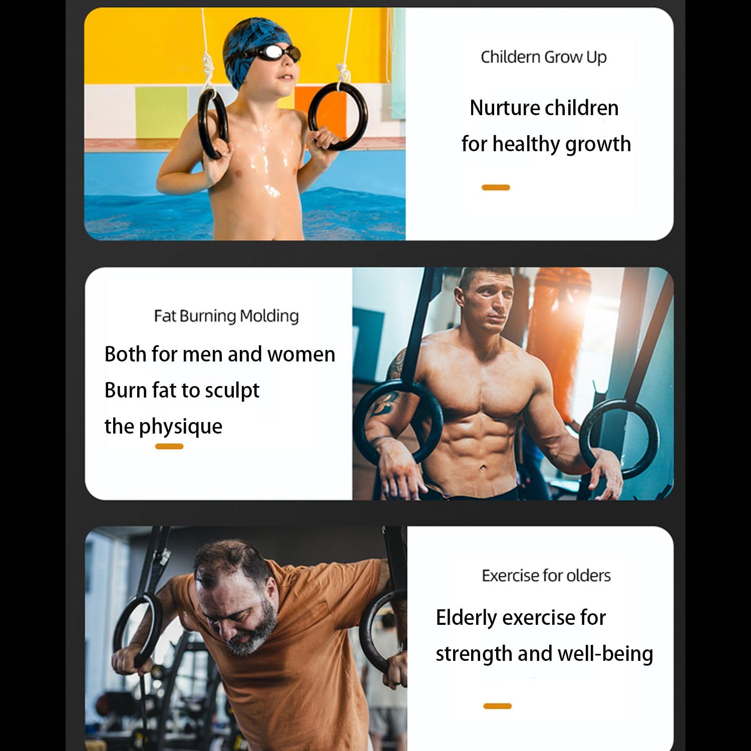Overview: Premium Gymnastic Rings are built to withstand intense training sessions with a 1000lbs capacity. These rings offer a versatile workout option, from beginner to advanced level exercises. The anti-slip design and durable nylon straps ensure secure and comfortable workouts every time, making it a must-have for any home fitness or gym setup. Whether for pull-ups, dips, or full-body routines, these rings provide the stability and strength needed to push your fitness to new heights.