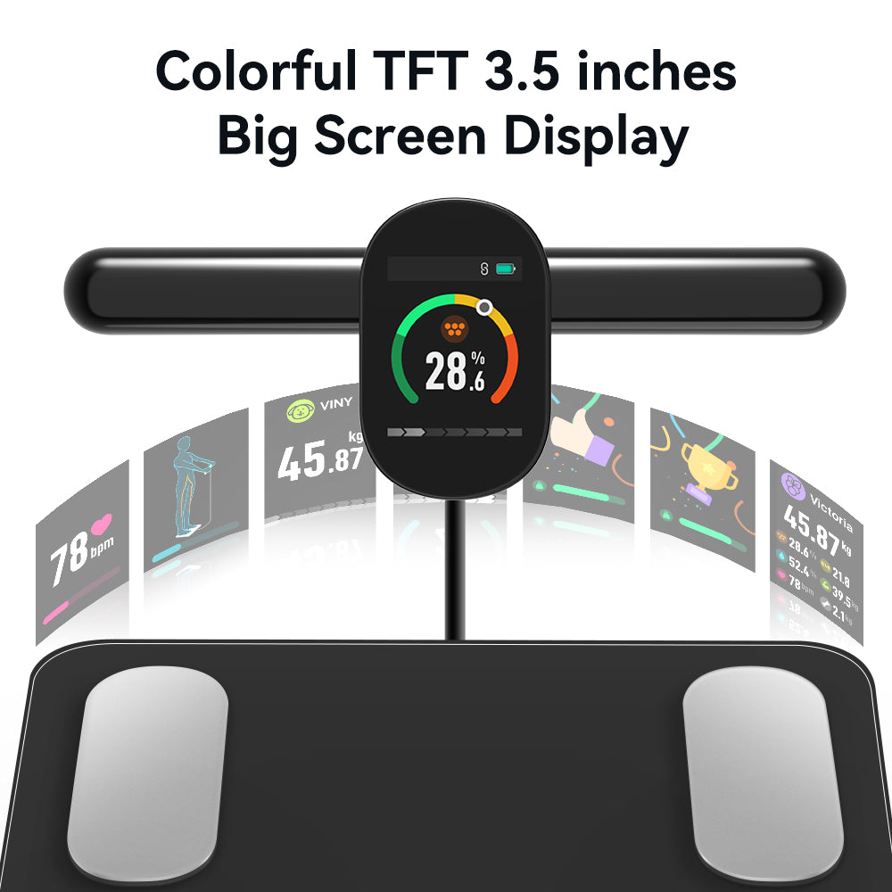 • Precision Measurement: 8 electrodes ensure accurate body fat analysis and composition tracking for a comprehensive health overview.