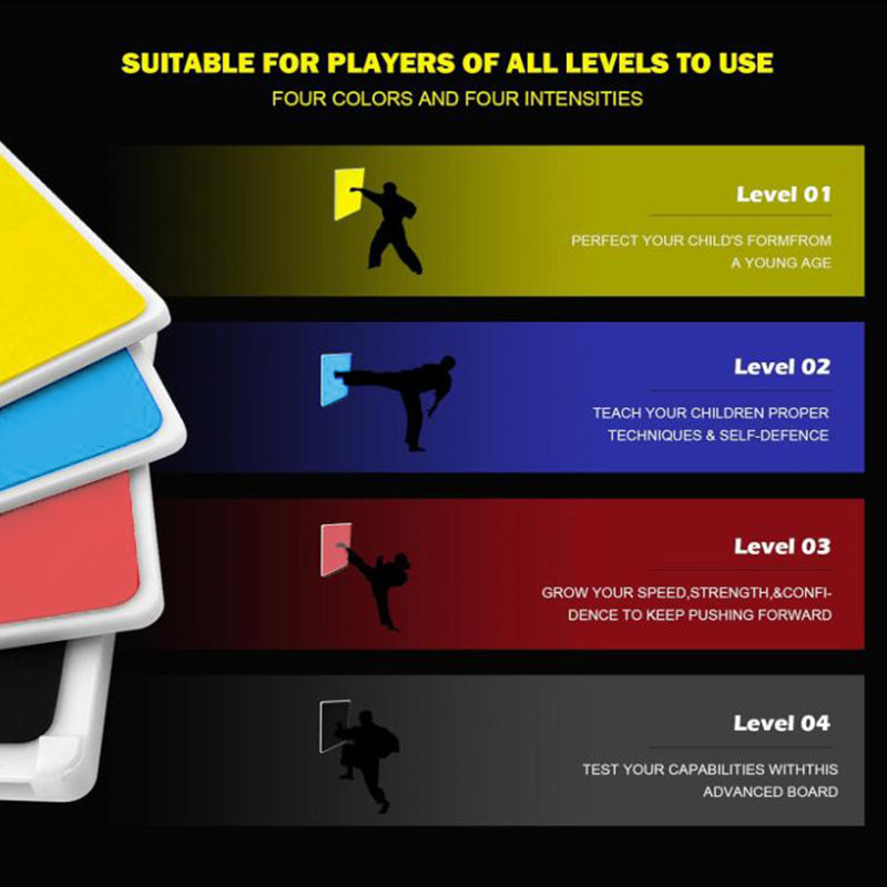 - Multiple Difficulty Levels: Four color-coded boards (Yellow, Blue, Red, Black) to accommodate all skill levels and training needs.