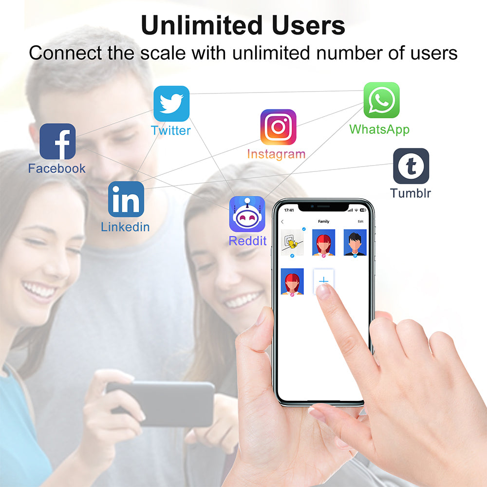- Multi-User Support: Connects to multiple devices and supports up to 24 users through the Fitdays app, allowing family sharing and tracking of fitness progress.